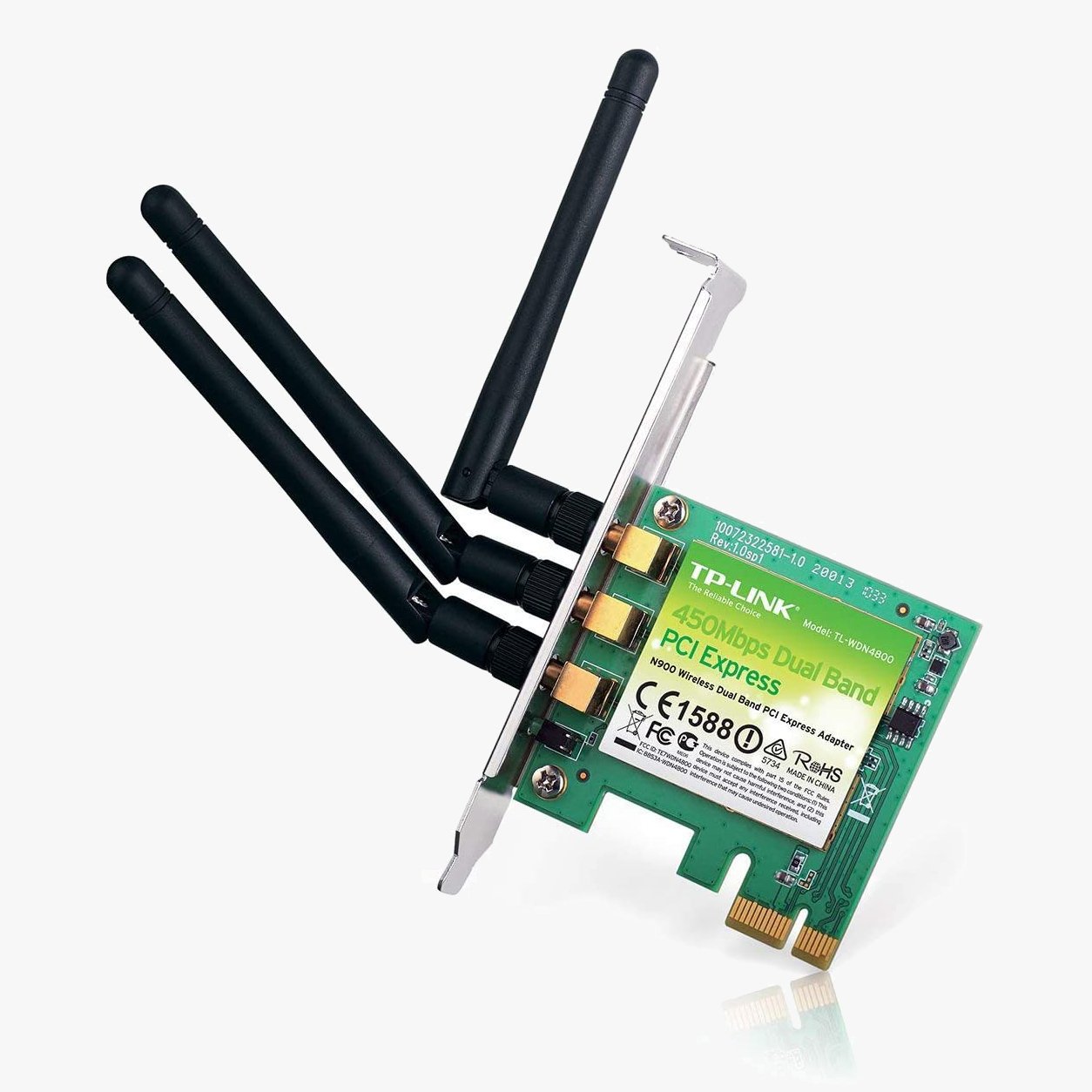 The TP-Link TL-WDN4800 450Mbps Wireless N Dual-Band PCI Express Adapter connects a desktop computer to a high-speed wireless network. Complying with IEEE 802.11a/b/g/n, it supports 2.4GHz and 5GHz channels for speeds up to 450Mbps—ideal for HD video streaming and online gaming.